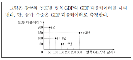 ① t년 명목 GDP는 실질 GDP보다 작다.