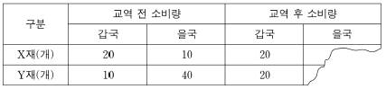 ③ 을국의 교역 후 Y재 소비량은 40개보다 적다.