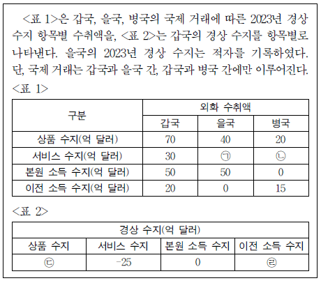 ③ 갑국은 해외 무상 원조금이 포함되는 항목이 5억 달러 적자이다.