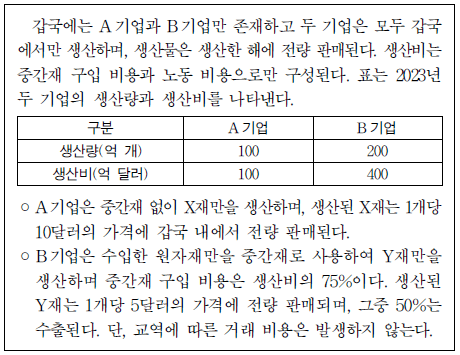 ③ 갑국의 중간재 구입 비용은 400억 달러이다.