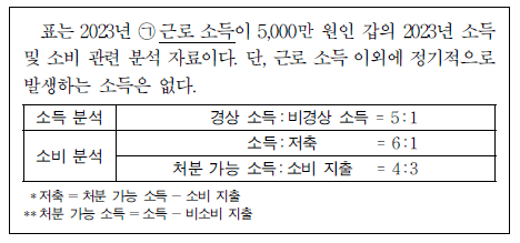 ⑤ 소비 분석 자료의 지표 비율이 유지되고 소득이 3,000만 원