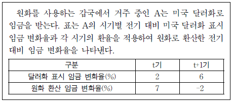 ② 전기 대비 t기 환율 변동은 미국 시장에서 갑국 수출품의 가격경쟁력 하락 요인이다.