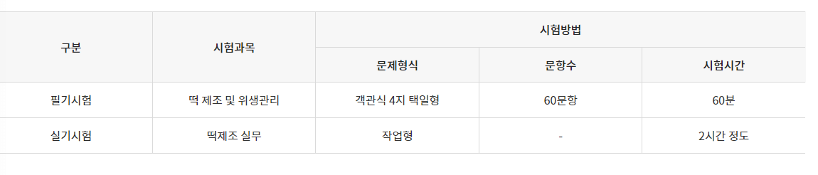 더불어, 자격증 도입 시기가 오래 되지 않아 아직 합격자가 많지 않아 지금 취득 해 현장 경력을 쌓는다면 충분히 분야에서 두각을 보일 수 있다 떡제조기능사 응시자격은 모든 기능사 시험이 그렇듯 학력, 경력, 성별을 따지지 않는 자격증입니다.