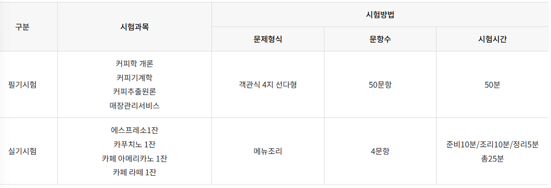 바리스타 시험과목