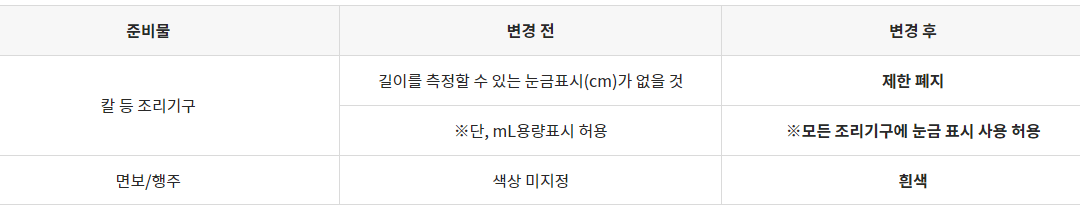 ② 조리기능사 준비물 규격 변경