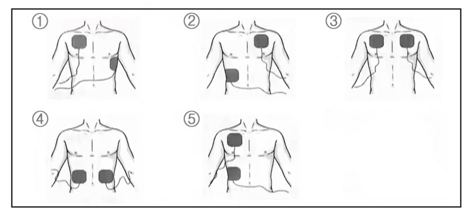 79. 자동심장충격기 사용 시 전극 패드를 붙이는 위치로 옳은 것은?