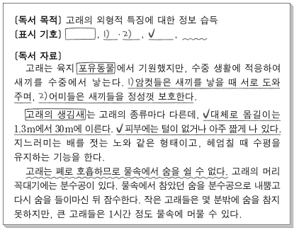 ② 글 전체에 주의를 기울일 수 있도록 글을 읽고 있을 때에는 밑줄 긋기를 하지 않는다.