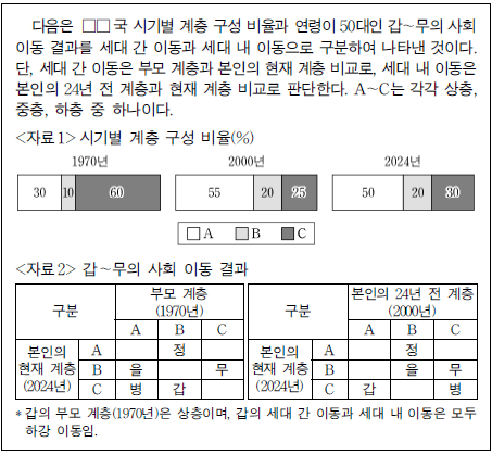 ⑤ 병은 세대 간 하강 이동을 하였고, 무는 세대 내 상승 이동을 하였다