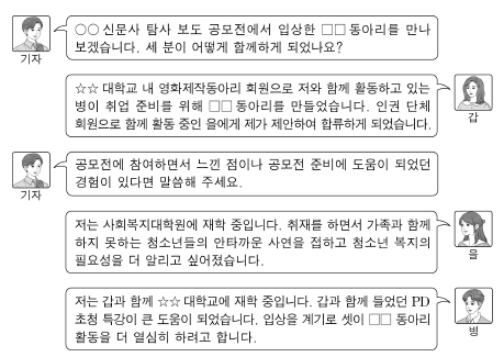 ◦ 갑은 청소년이 휴대 전화에 부여하는 의미를 파악하기 위해 ○○ 고등학교 학생의 일상생활을 관찰한 연구 기관의 보고서를 분석함. 이후 휴대 전화 의존도가 높은 학생들에게 질문하여 사용 용도와 중독 증상 등에 대한 이야기를 깊이 있게 나누고 이 과정을 녹음함.