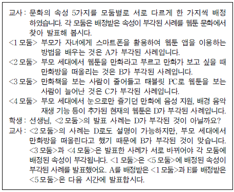 ④ <2 모둠>에 배정된 속성은 공유성, <5 모둠>에 배정된 속성은 전체성이다.