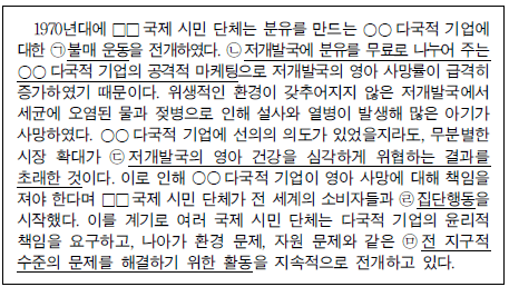 ③ ㉢은 ○○ 다국적 기업의 이윤 추구를 정당화하는 근거가 된다.