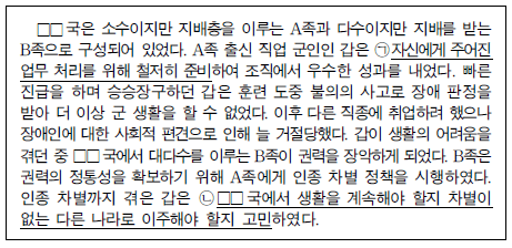 ⑤ B족과 달리 A족은 사회적 소수자 우대 정책으로 역차별을 받았다.