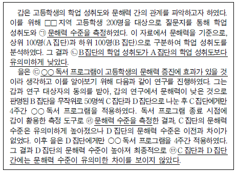 ② ㉠은 을의 연구에서 사전 검사로 활용되었다.