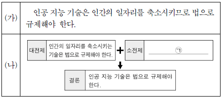 7. (가)의 주장을 (나) 그림으로 나타낼 때, ㉠에 대한 반론의 근거로 가장 적절한 것은? [3점]