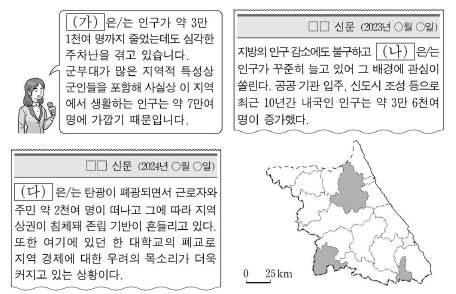 4. 다음은 지도에 표시된 세 지역에 대한 인구 관련 언론 보도 내용이다. (가)~(다) 지역에 대한 설명으로 옳은 것은? [3점]