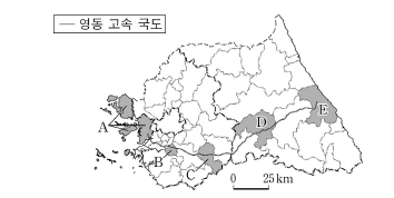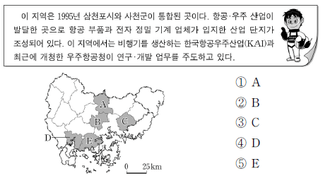 5. 다음 자료에서 설명하는 지역을 지도의 A~E에서 고른 것은? [3점]