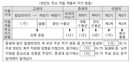 ② (나)가 발생한 시기에 길주․명천 지괴가 형성되었다.